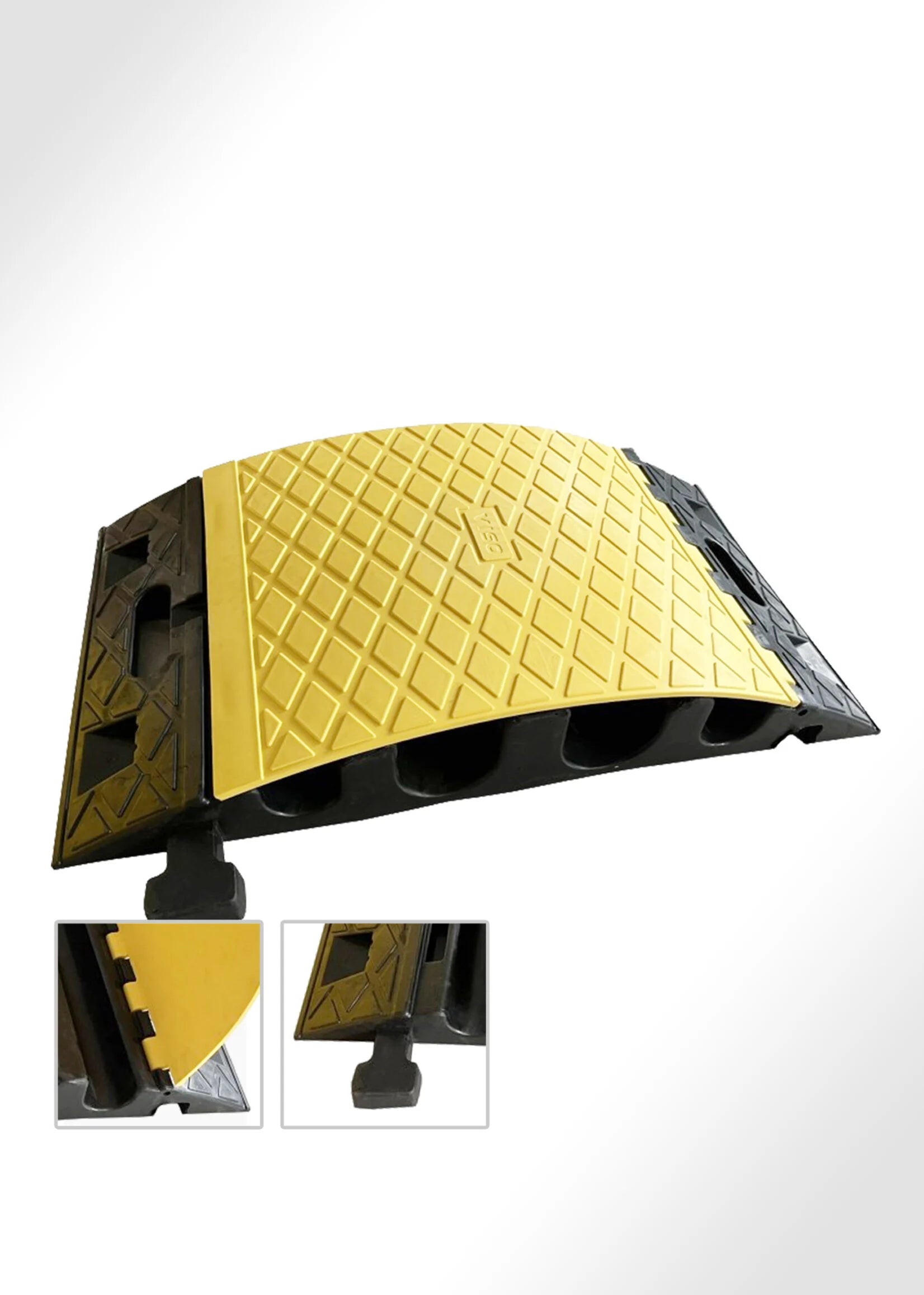 Die schwere Kabelbrücke mit vier Kanälen bietet zuverlässigen Schutz für Kabel und Schläuche bei temporären Installationen. Dank widerstandsfähigem Gummi, einer gut sichtbaren gelben Abdeckung und einem modularen Verbindungssystem ist sie ideal für Events, Baustellen, Industrie und Logistik.