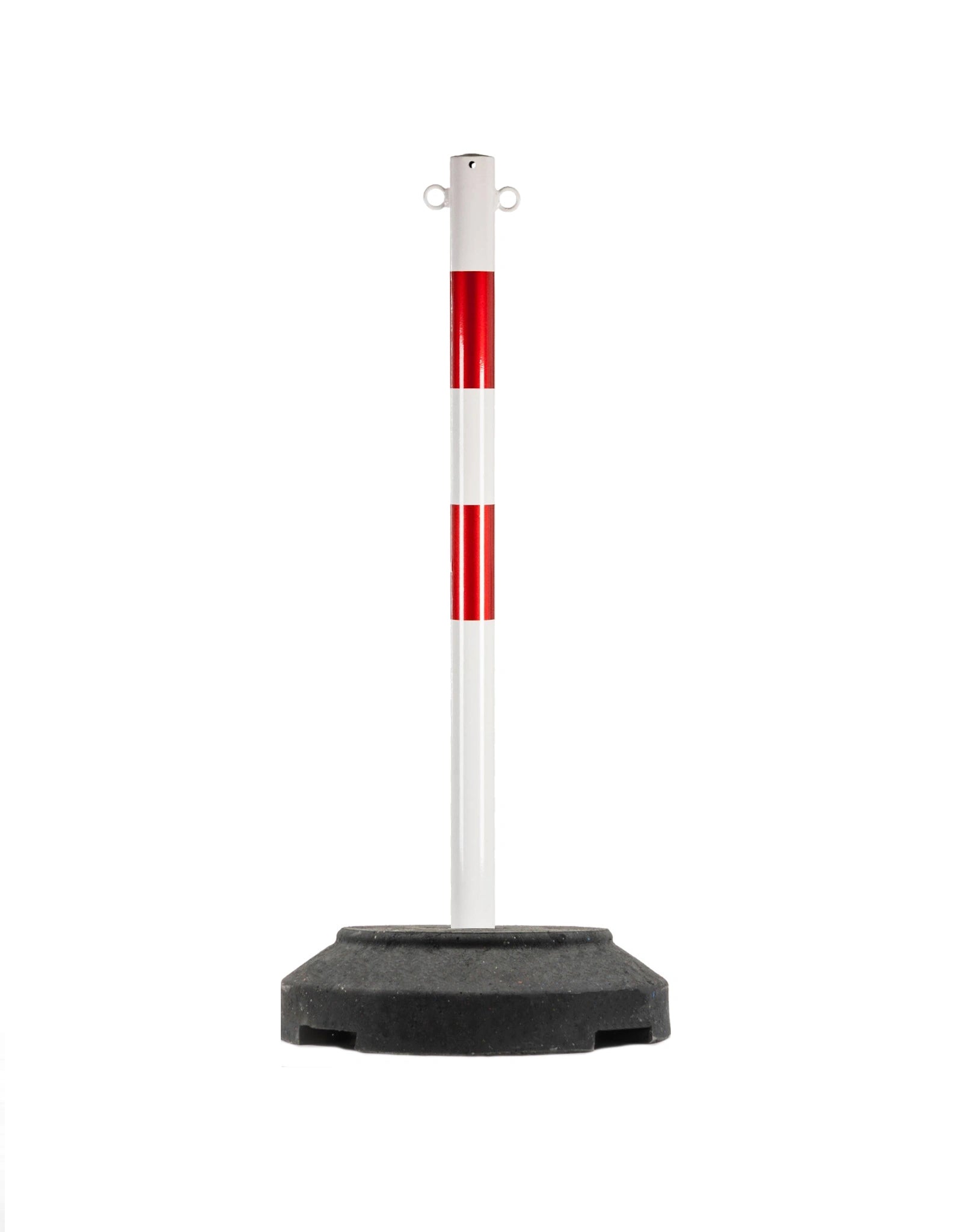 Kettenpfosten Metall Rot-Weiß + 15 kg Fuß – Stabile Absperrlösung