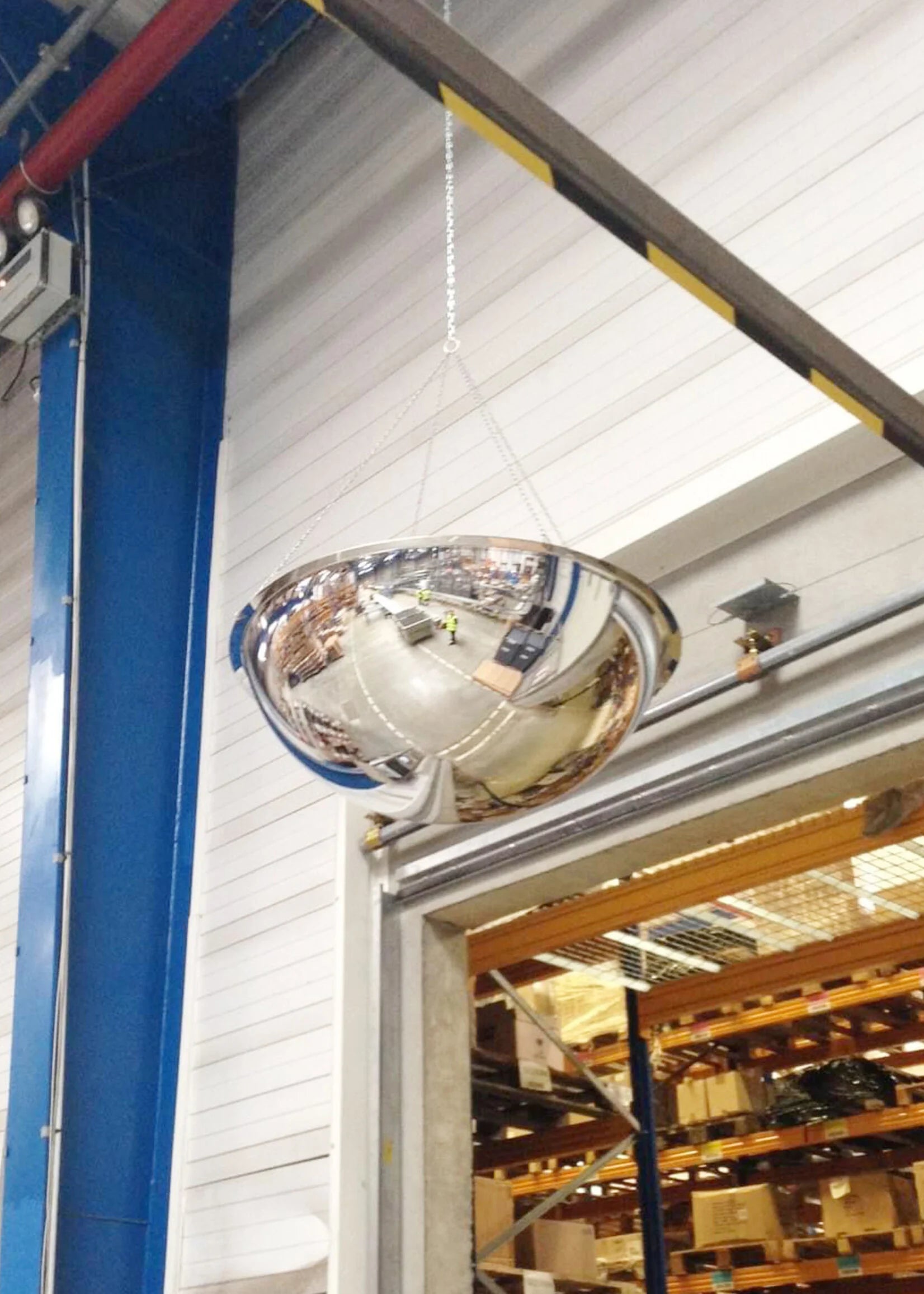 Der 360°-Panoramaspiegel ist die ideale Lösung zur Reduzierung von toten Winkeln in Lagern, Produktionsstätten und Gewerbehallen. Durch die rundum reflektierende Oberfläche sorgt er für eine bessere Sichtbarkeit von Verkehrs- & Gefahrenbereichen, wodurch die Sicherheit am Arbeitsplatz erhöht wird.