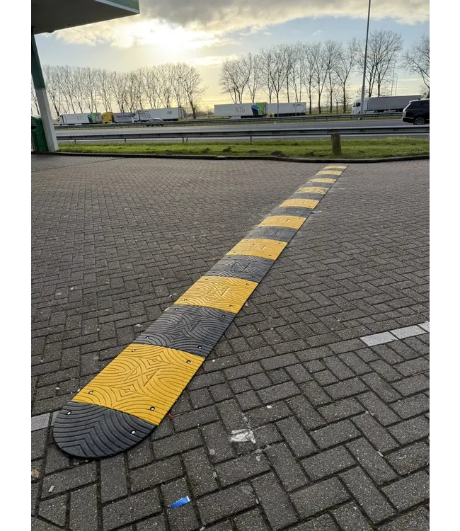 Die 3 cm hohe Verkehrsberuhigung ist ideal für den Einsatz in Bereichen mit moderater Geschwindigkeit – insbesondere bei 30 bis 40 km/h. Durch ihre geringe Bauhöhe bietet sie eine sanfte Dämpfung, ohne Fahrzeuge abrupt zu bremsen. Damit eignet sich diese flache Bodenschwelle besonders für Innenräume wie Lagerhallen und Produktionsstätten mit Gabelstaplerverkehr oder anderen innerbetrieblichen Transportmitteln.