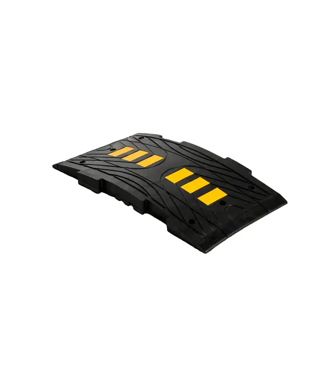 Das Mittelelement der Temposchwelle 5 cm Heavy Traffic ist speziell für den Einsatz in stark befahrenen Bereichen entwickelt worden. Es sorgt für eine effektive Geschwindigkeitsreduzierung auf ca. 10 km/h und überzeugt durch seine robuste Bauweise aus Vollgummi.